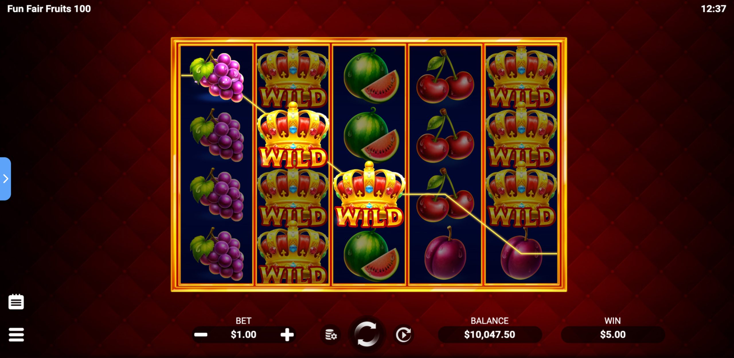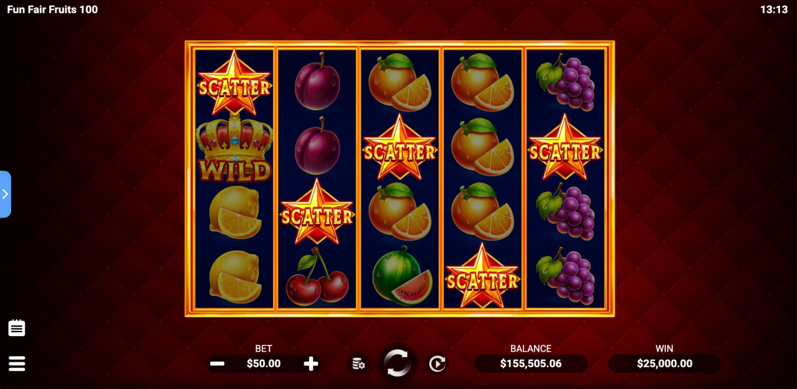 Watch for the stacked Wild crown, the king of the fair, sweeping in to boost your wins. And when the bright Scatter star appears, get ready – bigger rewards are on their way. Let Fun Fair Fruits 100 fill your day with juicy wins and non-stop fun.